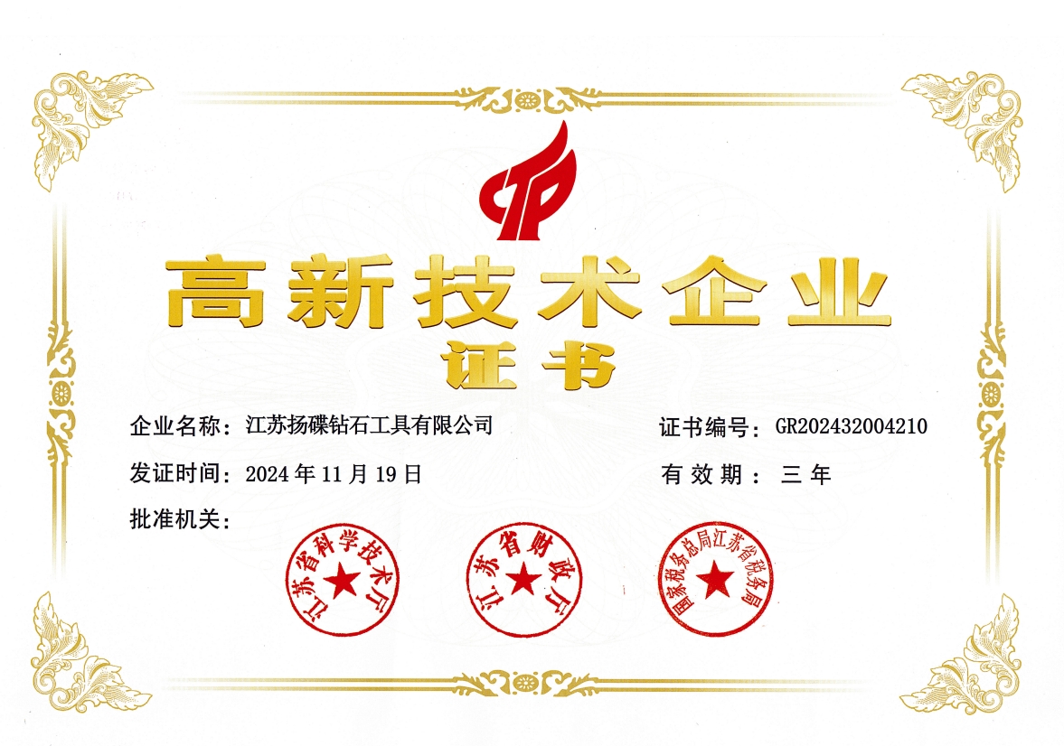 多年來,企業(yè)通過ISO9001國際質(zhì)量體系認證,被中國中輕產(chǎn)品質(zhì)保中心授予“全國金剛石制造行業(yè)質(zhì)量放心滿意單位”,獲得江蘇省高新技術(shù)企業(yè)稱號,榮獲江蘇省小巨人稱號,變速箱PCD復(fù)合鉆鉸刀獲省高新技術(shù)產(chǎn)品等等。